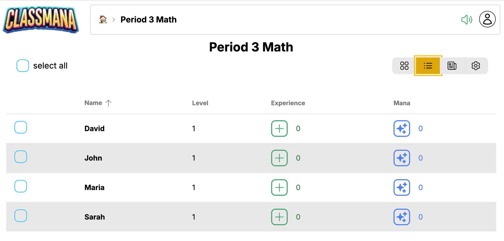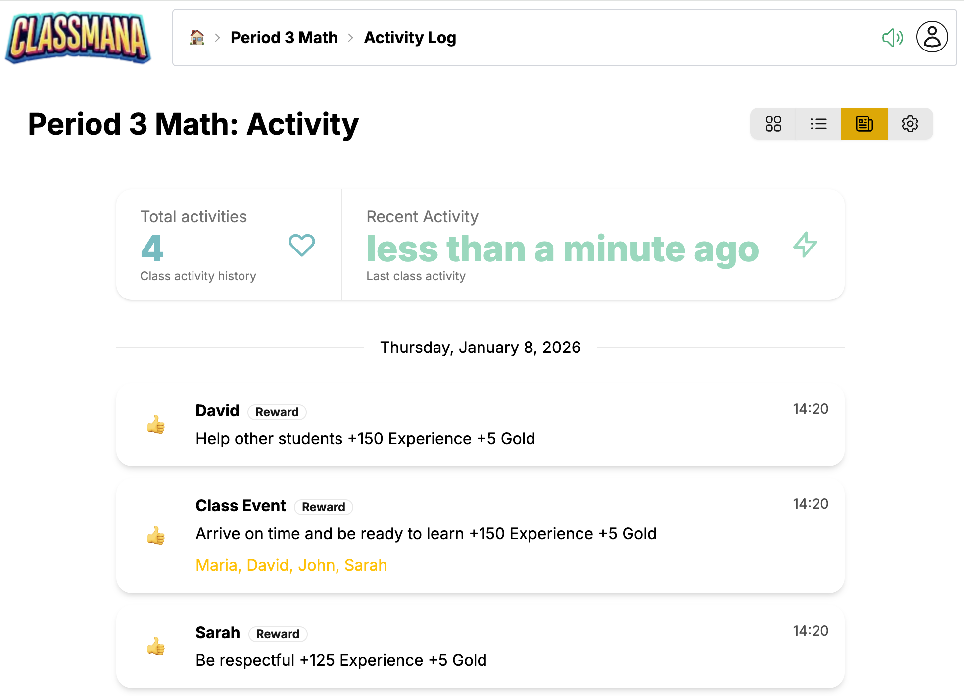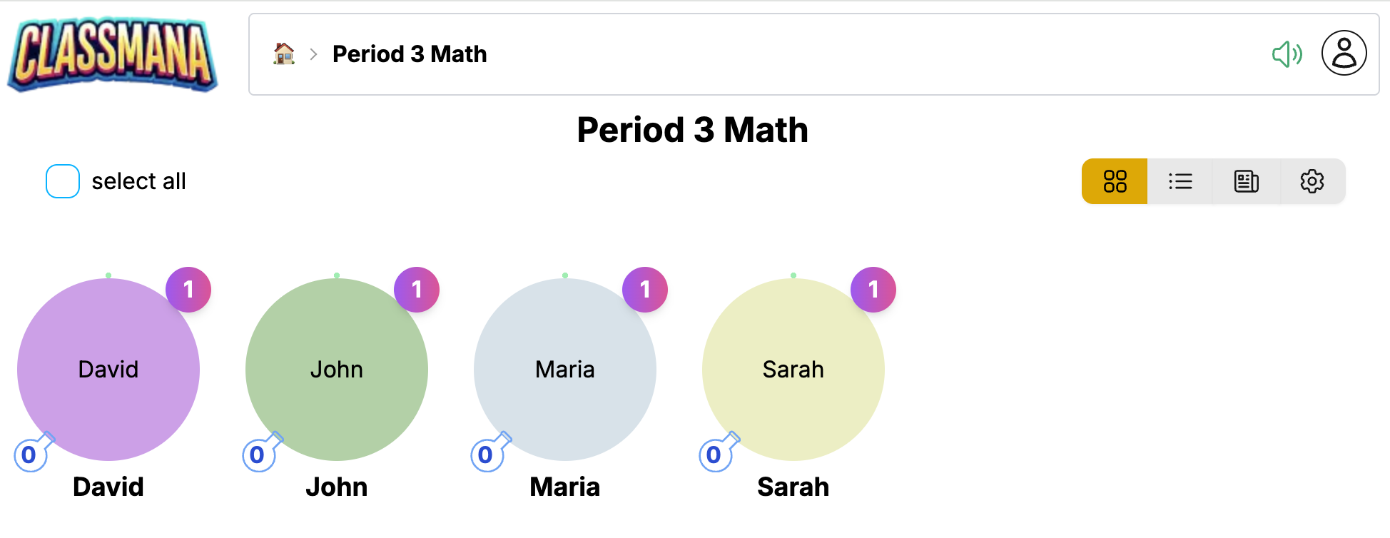 Sınıf Panosu, bir sınıfı yönetmek için merkezi merkezinizdir. Buradan öğrencileri görüntüleyebilir, ödüller verebilir, güçler kullanabilir, aktiviteleri takip edebilir ve sınıf ayarlarını yapılandırabilirsiniz.
