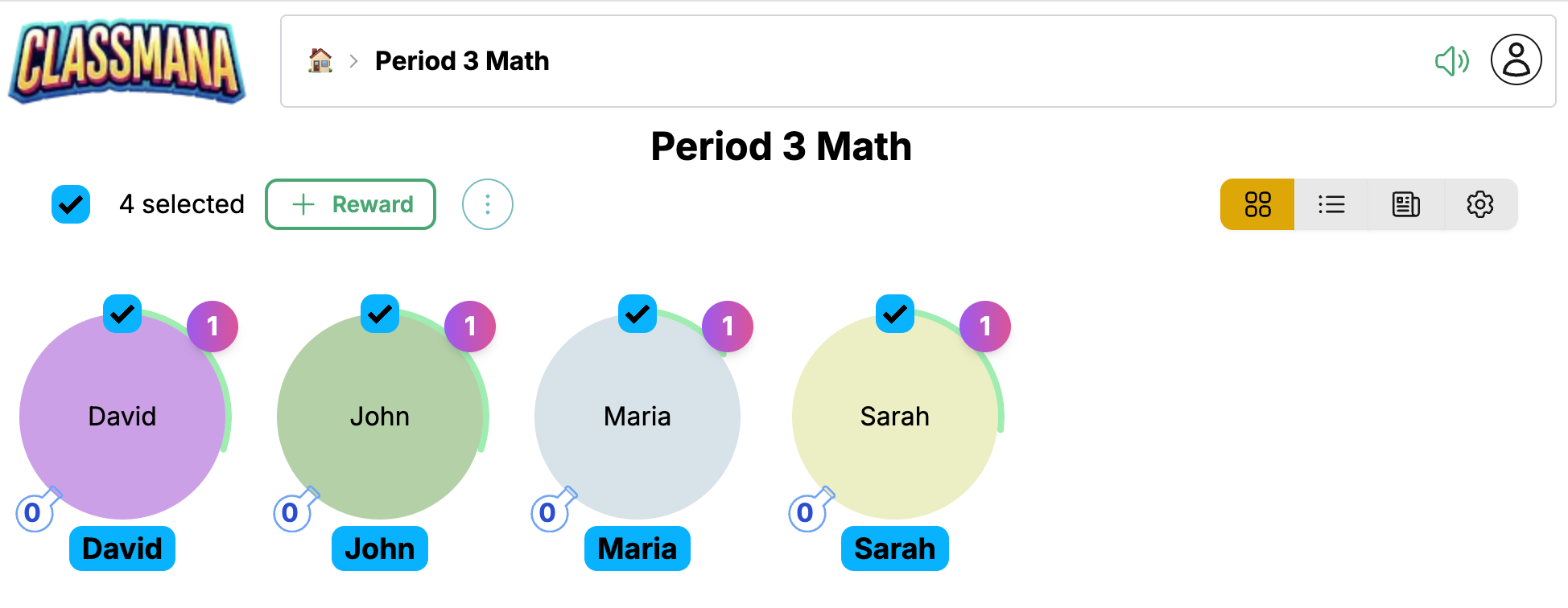 - Seçilen tüm öğrencilere uygulamak için Ödül'e tıklayın